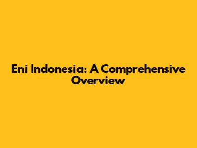 Eni Indonesia: A Comprehensive Overview
