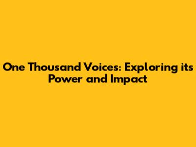 In today's interconnected and rapidly changing world, the concept of "one thousand voices" is more relevant than ever. Here's why: