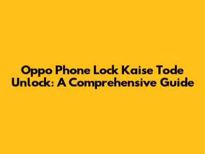 Understanding Oppo Phone Locks and Why They're Tricky