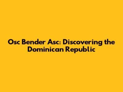 Osc Bender Asc: Discovering The Dominican Republic