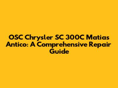 Hey guys! Let's dive into the world of the OSC Chrysler SC 300C Matias Antico. This guide is all about helping you understand this awesome car and how to keep it running smoothly. We'll cover everything from common issues to detailed repair steps. Get ready to become a SC 300C expert!