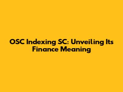 - OSC Indexing SC can refer to a financial concept, possibly related to an index or securities related to open-source components.