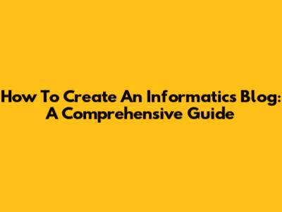 How To Create An Informatics Blog: A Comprehensive Guide