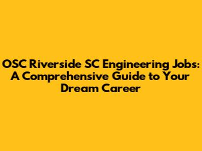 Unveiling the World of OSC Riverside SC Engineering Opportunities