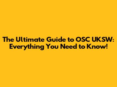 The Ultimate Guide to OSC UKSW: Everything You Need to Know!
