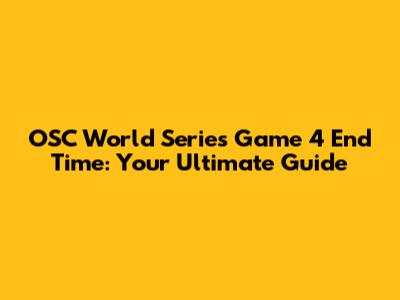 Hey everyone! Are you hyped for the OSC World Series Game 4? I know I am! One of the biggest questions on everyone's mind is the end time of this epic showdown. Knowing when the game will wrap up is crucial for planning your day, right? Whether you're making dinner, catching up with friends, or just trying to get some sleep, figuring out the end time is super important. So, let's dive into all the details and figure out what we can expect when the final whistle blows. We'll look at the factors that affect the end time, how to get the most accurate information, and some general tips to make sure you don’t miss a single moment of the action. So, get ready to get all the answers on the OSC World Series Game 4 end time! This guide will provide everything you need to know to stay informed and enjoy the game to the fullest. Let's make sure you're well-prepared for the big game! Let's get started.