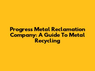 Progress Metal Reclamation Company: A Guide To Metal Recycling