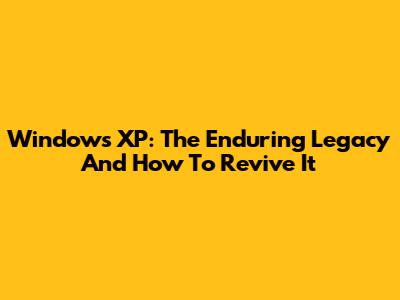 Windows XP: The Enduring Legacy And How To Revive It