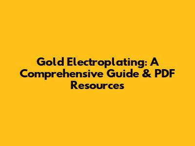Gold Electroplating: A Comprehensive Guide & PDF Resources