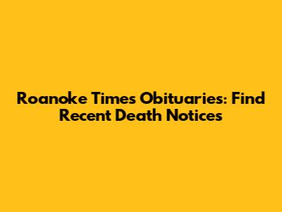 Roanoke Times Obituaries: Find Recent Death Notices