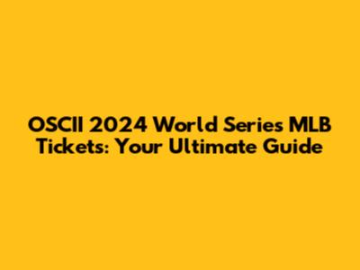 OSCII 2024 World Series MLB Tickets: Your Guide