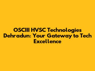 OSCIII HVSC Technologies Dehradun: Why Choose Them?