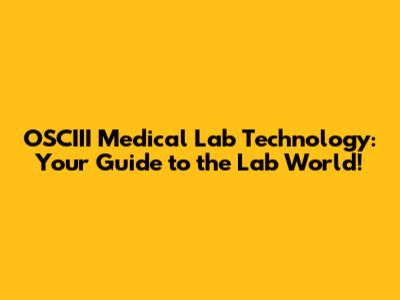 Unveiling OSCIII Medical Lab Technology: What's the Buzz?