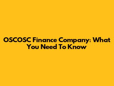 OSCOSC Finance Company: What You Need To Know