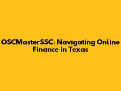 Hey guys! So, you're looking for information on OSCMasterSSC and how it relates to online finance in Texas, huh? Awesome! You've come to the right place. We're going to dive deep into everything you need to know about this topic. This is your ultimate guide, covering everything from what OSCMasterSSC is all about, to how it impacts your finances in the Lone Star State, and where to find the best resources online. Let's get started, shall we?