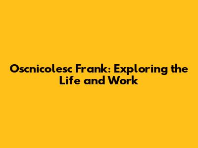 The Impact and Legacy of Oscnicolesc Frank