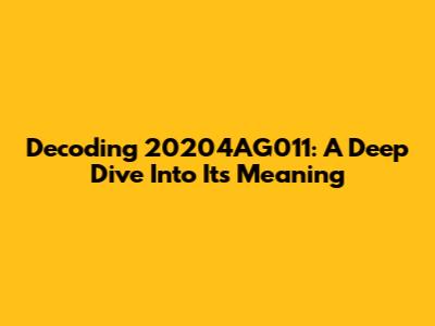 Decoding 20204AG011: A Deep Dive Into Its Meaning
