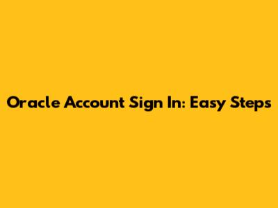 Oracle Account Sign In: Easy Steps