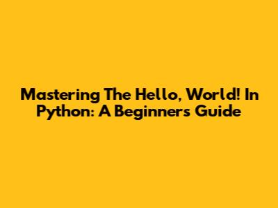 Mastering The 'Hello, World!' In Python: A Beginner's Guide