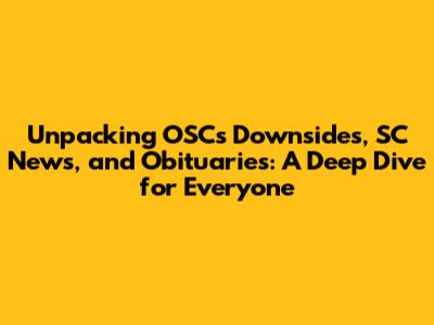 Hey guys, let's dive into some topics that might seem a bit scattered at first glance: the disadvantages of OSC, some South Carolina (SC) news, and the somber subject of obituaries. While these might not be everyday chatter, understanding them can offer valuable insights, whether you're navigating the complexities of online systems, keeping up with local happenings, or dealing with personal loss. We'll break down each of these areas, making sure to provide plenty of detail and keep things engaging. So, grab a coffee, settle in, and let's explore!