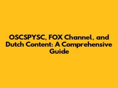 Alright guys, let's dive deep into the world of OSCSPYSC, the FOX Channel, and everything related to Dutch content. This is your comprehensive guide, designed to make sense of these terms and how they all fit together. Whether you're a seasoned tech enthusiast or just starting out, we've got something for you. So, buckle up and let's get started!