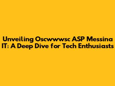 Hey guys, are you ready to dive deep into the world of Oscwwwsc ASP Messina IT? If you're a tech aficionado, a developer, or just someone curious about the digital landscape, you've probably stumbled upon this term. Oscwwwsc ASP Messina IT isn't just a random string of characters; it represents a crucial nexus of technology and information, particularly within the Italian context. We're going to break down what it means, why it's important, and how it might impact your digital journey. So, grab your favorite beverage, settle in, and let's unravel the mystery behind Oscwwwsc ASP Messina IT together. We'll explore its technical underpinnings, its role in the IT infrastructure of Messina, and the broader implications for those who engage with it. This isn't just about jargon; it's about understanding the systems that power our modern world, and how specific entities like Oscwwwsc contribute to that intricate web.