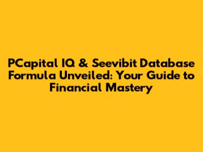 Hey there, financial wizards and data enthusiasts! Ever found yourselves drowning in a sea of financial data, wishing there was a secret formula to unlock its hidden potential? Well, guess what? You're in luck! Today, we're diving deep into the world of PCapital IQ and the Seevibit database formula, revealing the keys to cracking the code of financial analysis and investment research. Get ready to transform from data navigators to financial strategists! This isn't just about crunching numbers; it's about understanding the stories they tell and making informed decisions. So, buckle up, because we're about to embark on a journey that'll turn you into a financial analysis guru.