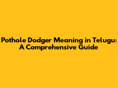 Hey there, folks! Ever wondered about the pothole dodger meaning in Telugu? Well, you're in the right place! We're gonna dive deep into what this term means, its implications, and how it relates to everyday life. So, buckle up, because we're about to embark on a linguistic and cultural journey that'll clear up any confusion you might have. Let's get started, shall we?