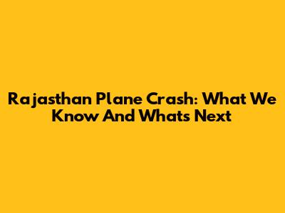 Rajasthan Plane Crash: What We Know And What's Next
