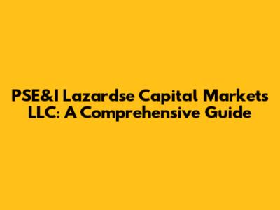 Hey there, finance enthusiasts! Ever heard of PSE&I Lazardse Capital Markets LLC? If not, you're in for a treat! This article is your go-to guide, breaking down everything you need to know about this intriguing player in the capital markets. We'll dive deep, exploring their services, strategies, and the impact they have on the financial world. Get ready to level up your understanding of finance – it's going to be a fun ride!
