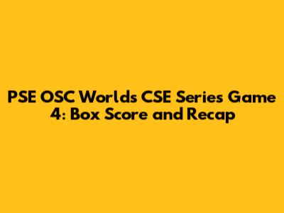 Hey guys! Today, we're diving deep into the thrilling Game 4 of the PSE OSC Worlds CSE Series. Whether you're a die-hard fan or just tuning in, we've got all the details you need right here. Let's break down the box score, analyze key plays, and discuss the overall implications of this exciting matchup. We'll cover player performances, strategic decisions, and the pivotal moments that shaped the outcome. So, grab your snacks, settle in, and get ready for a comprehensive recap of Game 4!