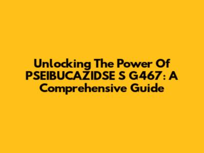 Unlocking The Power Of PSEIBUCAZIDSE S G467: A Comprehensive Guide