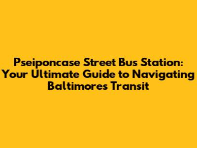 Hey there, transit enthusiasts! Ever found yourself scratching your head, trying to figure out the ins and outs of a busy bus station? Well, if you're in Baltimore and the Pseiponcase Street Bus Station is on your radar, you've come to the right place. This guide is your friendly, comprehensive resource for everything you need to know about this bustling hub. We'll dive into its location, services, routes, and even some handy tips to make your journey smoother. So, buckle up, because we're about to explore the heart of Baltimore's public transportation!