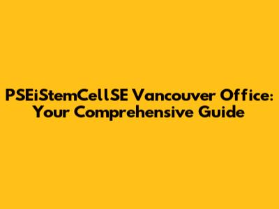 - How can I schedule a consultation? You can schedule a consultation by contacting the PSEiStemCellSE Vancouver office directly via phone, email, or through their website.