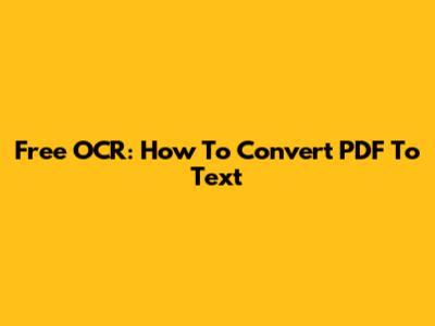 Free OCR: How To Convert PDF To Text