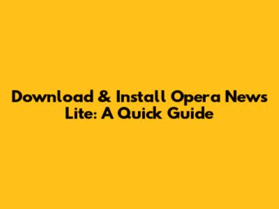 Download & Install Opera News Lite: A Quick Guide
