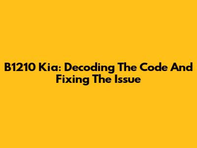B1210 Kia: Decoding The Code And Fixing The Issue