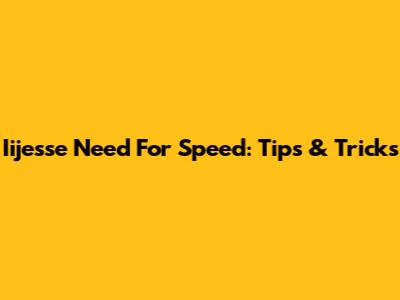 Iijesse Need For Speed: Tips & Tricks