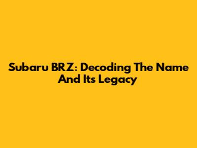 Subaru BRZ: Decoding The Name And Its Legacy