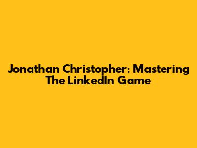 Jonathan Christopher: Mastering The LinkedIn Game