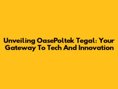 Unveiling OasePoltek Tegal: Your Gateway To Tech And Innovation