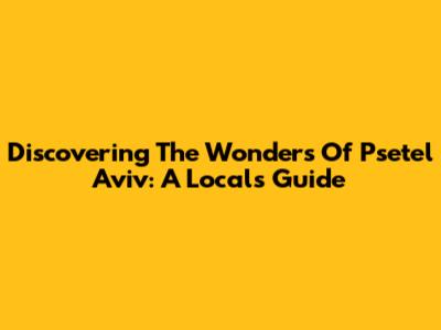 Discovering The Wonders Of Psetel Aviv: A Local's Guide