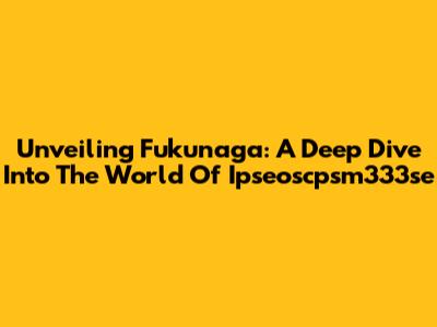 Unveiling Fukunaga: A Deep Dive Into The World Of Ipseoscpsm333se
