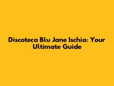 Discoteca Blu Jane Ischia: Your Ultimate Guide