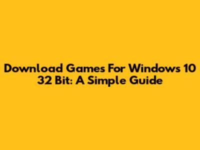 Download Games For Windows 10 32 Bit: A Simple Guide