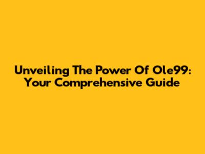 Unveiling The Power Of Ole99: Your Comprehensive Guide