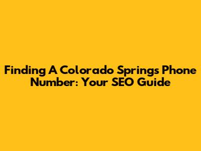 Finding A Colorado Springs Phone Number: Your SEO Guide