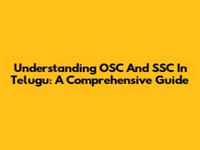 Understanding OSC And SSC In Telugu: A Comprehensive Guide