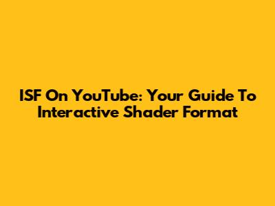 ISF On YouTube: Your Guide To Interactive Shader Format