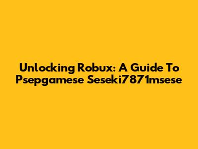Unlocking Robux: A Guide To Psepgamese Seseki7871msese